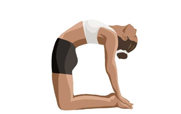 Tip: Once you can see the floor behind you, there is no need to continue to push deeper into this posture… you should move on to the more advanced posture Full Camel.