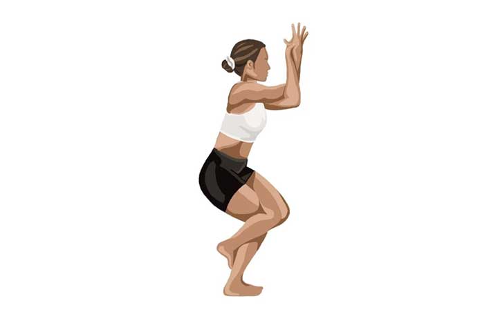Utkatasana works all the muscles in your legs and helps strengthen your arms and abdomen. This posture will help create traction and length in your spine, while improving strength in the weight-bearing joints.