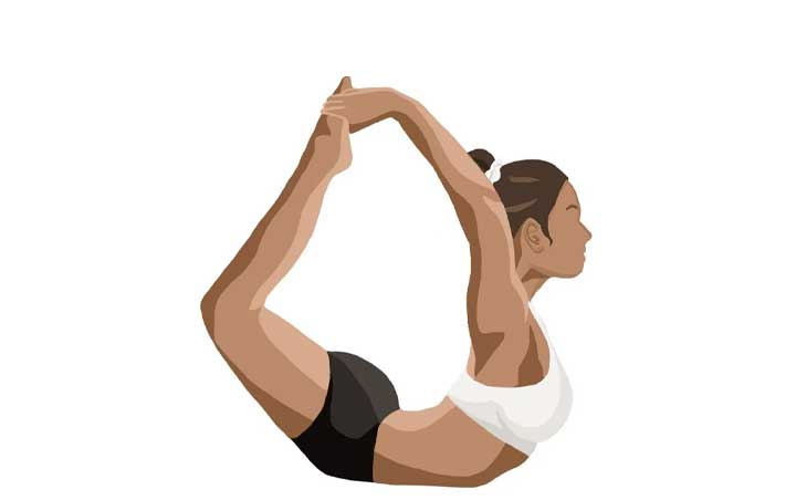 Dhanurasana works and strengthens the entire spine improving flexibility of the lumbar, thoracic and cervical spine while strengthening hips, improving posture and spinal health through increased blood flow to the region. Improves small and large intestines function helping digestion.